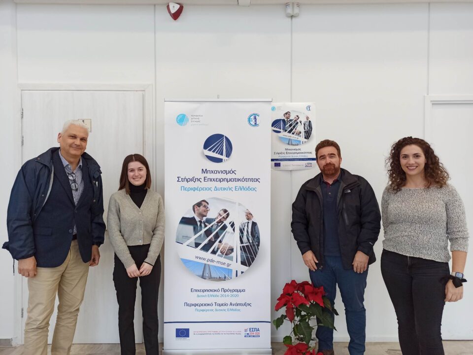 Τα γραφεία του Μηχανισμού Στήριξης Επιχειρηματικότητας της Περιφέρειας Δυτικής Ελλάδας στην Πάτρα επισκέφτηκε τη Πέμπτη 12 Ιανουαρίου 2023, ο Αντιπεριφερειάρχης Επιχειρηματικότητας, Έρευνας και Καινοτομίας. Φωκίωνας Ζαΐμης. όπου είχε την ευκαιρία να ενημερωθεί για τις δράσεις του από τους έμπειρους συμβούλους του γραφείου, Χαράλαμπο Δάνολο, Ελένη Χατούπη και ΜπλεόναΤσανάι.