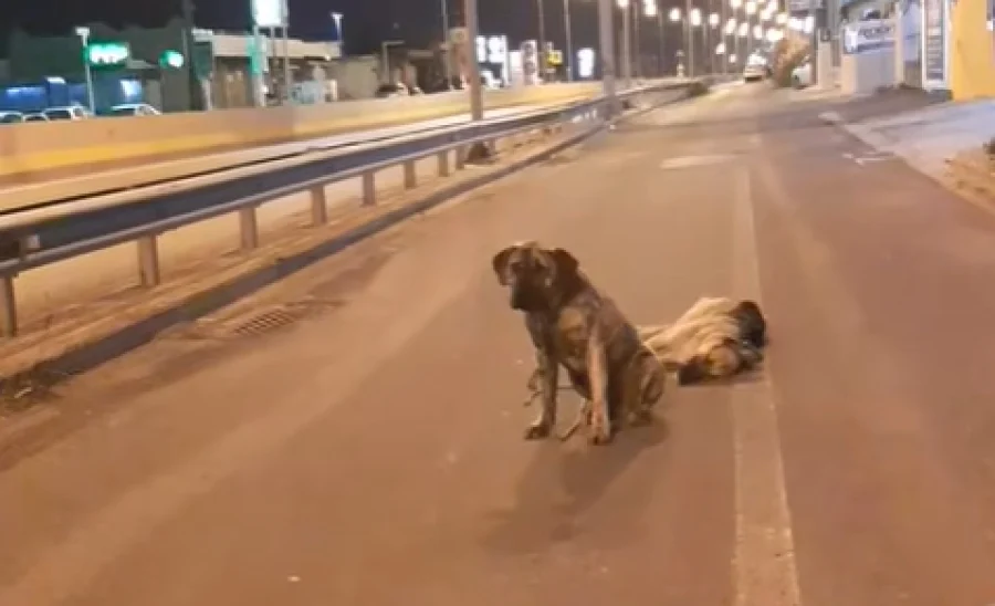 Γυναίκα, που περνούσε από το σημείο, κατέγραψε το εν λόγω στιγμιότυπο, με τον σκύλο να μην εγκαταλείπει τον νεκρό φίλο του, αλλά συνεχίζει να τον σκουντάει, προσπαθώντας να τον «ξυπνήσει».