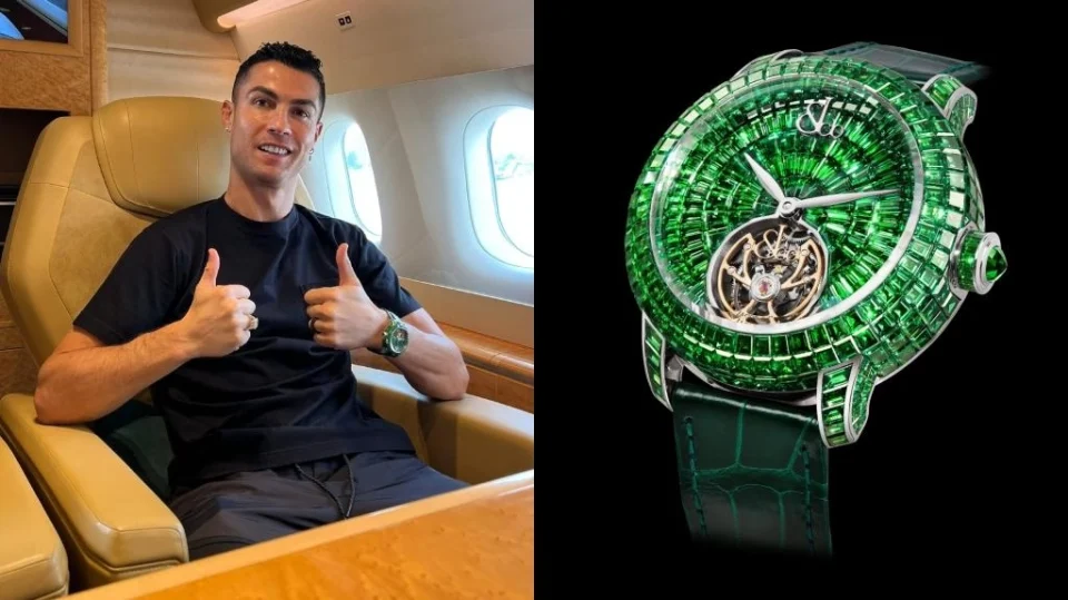 Ο Πορτογάλος σταρ δείχνει να απολαμβάνει τη νέα του ζωή στη Σαουδική Αραβία. Μάλιστα, ο φωτογραφικός φακός τον έχει απαθανατίσει τις τελευταίες ημέρες με ένα πανάκριβο ρολόι στον καρπό του χεριού του, το οποίο το πήρε δώρο στον εαυτό του. Πρόκειται για ένα συγκλονιστικό Jacob & Co Caviar Tourbillon Tsavorites σε πράσινο χρώμα, με την τιμή του να ξεπερνά τα 710.000 ευρώ!