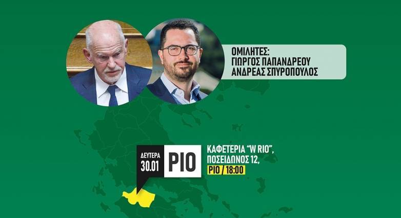 Στην εκδήλωση είναι προσκεκλημένος μας ο Γραμματέας του ΠΑ.ΣΟ.Κ. – Κίνημα Αλλαγής Ανδρέας Σπυρόπουλος και ο π. Πρωθυπουργός και Βουλευτής Αχαΐας Γιώργος Παπανδρέου.