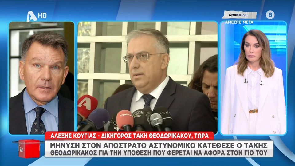 Μήνυση κατά του απόστρατου αστυνομικού για την υπόθεση του γιου του κατέθεσε νωρίτερα, σήμερα, στον Άρειο Πάγο ο υπουργός Προστασίας του Πολίτη, Τάκης Θεοδωρικάκος. Κατά τη διάρκεια της κατάθεσης της μήνυσής του, ο κ. Θεοδωρικάκος ανέφερε ότι θα πάει «μέχρι τέλους», ενώ για την υπόθεση έχει «επιστρατεύσει» τον γνωστό ποινικολόγο, Αλέξη Κούγια. Υπενθυμίζεται ότι ο κ. Θεοδωρικάκος κατέθεσε μήνυση για ψευδή κατάθεση, συκοφαντική δυσφήμιση και για παράβαση καθήκοντος κατά του απόστρατου αστυνομικού, που κατήγγειλε την υπόθεση του γιου του.