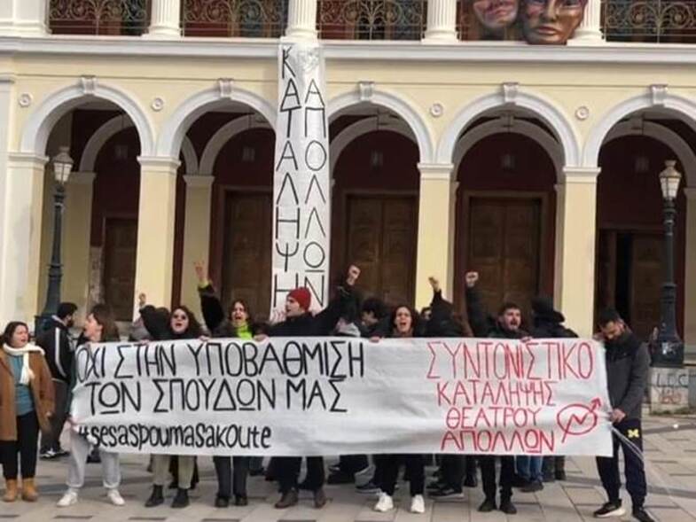 Στην Πάτρα σπουδαστές της Δραματικής Σχολής του ΔΗ.ΠΕ.ΘΕ Πάτρας η οποία τελεί υπό κατάληψη, κατέλαβαν το Δημοτικό Θέατρο της Πάτρας «Απόλλων».