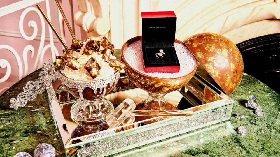 Το Serendipty3, ένα διάσημο café-εστιατόριο της Νέας Υόρκης, παρουσίασε ειδικά για την ημέρα του Αγίου Βαλεντίνου ένα επιδόρπιο το οποίο συνοδεύεται από ένα διαμαντένιο δαχτυλίδι Lorraine Schwartz. Το γλυκό έχει τιμή 250.000 δολάρια και θα σερβιριστεί μόνο σε ένα ζευγάρι.
