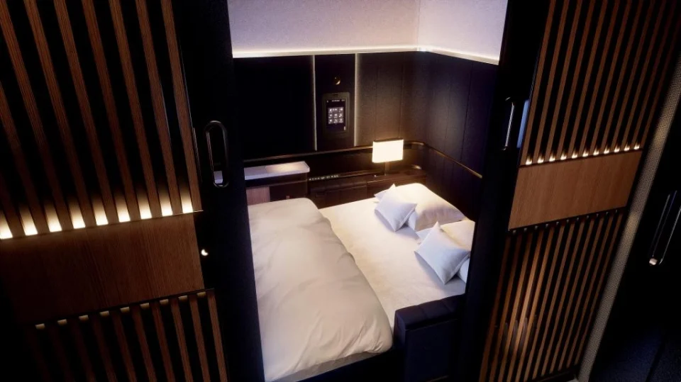 Τη νέα σουίτα πρώτης θέσης Suite Plus με διπλό κρεβάτι και πόρτα που κλείνει πλήρως παρουσίασε η Lufthansa. Τα νέα ιδιωτικά δωμάτια είναι μέρος του προγράμματος αναβάθμισης της αεροπορικής εταιρείας, ύψους 2,7 δισ. δολαρίων.