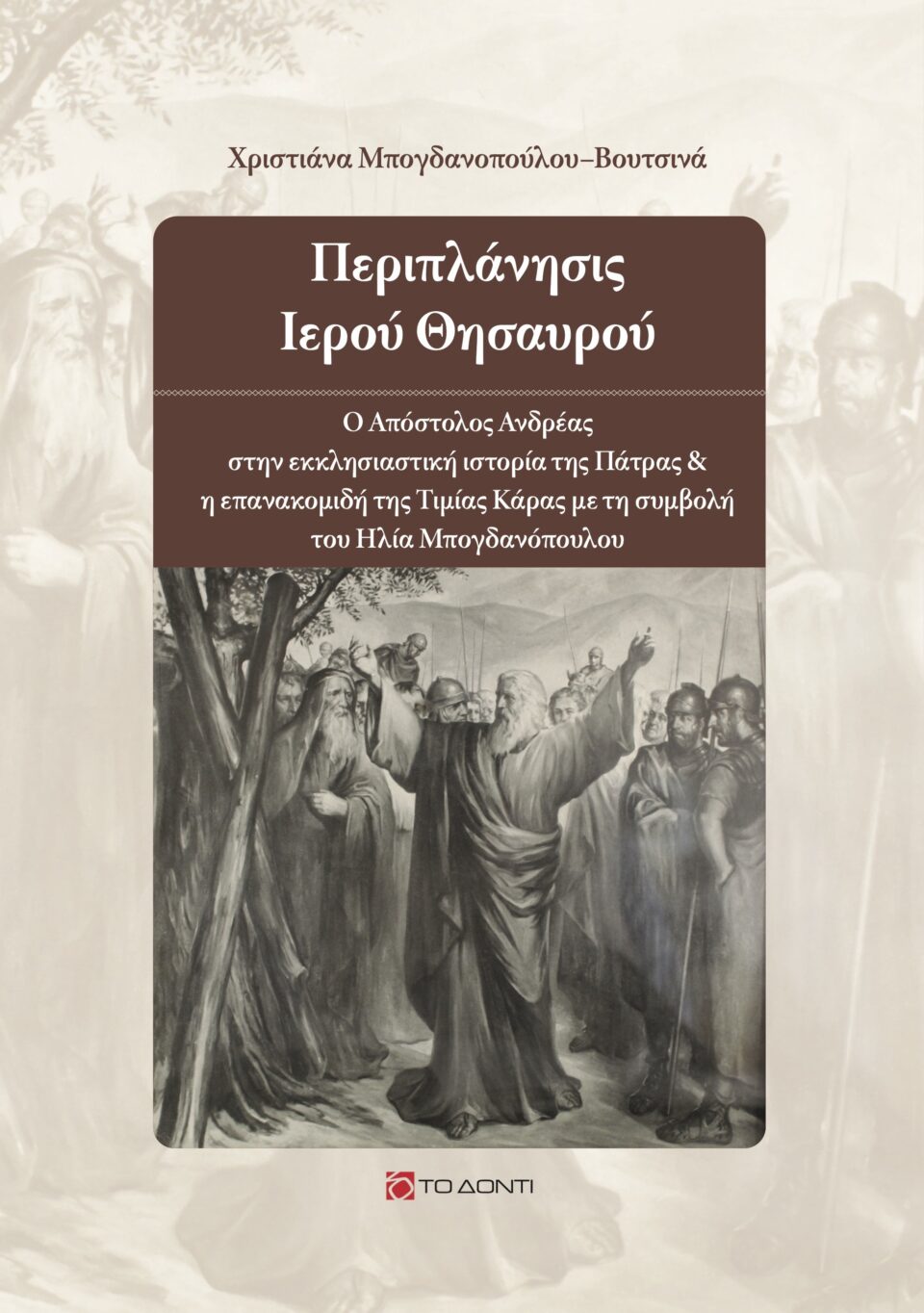 Το βιβλίο της Χριστιάνας Μπογδανοπούλου Βουτσινά «Περιπλάνησις Ιερού Θησαυρού» παρουσιάζεται από τις εκδόσεις «Το Δόντι» στην αίθουσα εκδηλώσεων του Δημοτικού Ωδείου Πατρών (Αράτου 10 & Ρ. Φεραίου) την Τετάρτη 15 Μαρτίου 2023, στις 8.00 μ.μ.