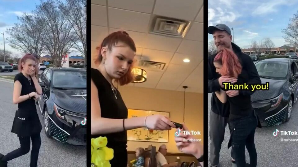 Εκείνη δεν δυσκολεύθηκε να απαντήσει, χωρίς ωστόσο να μπορεί να φανταστεί τι πρόκειται να ακολουθήσει. Ήταν η στιγμή που ο Mr Beast εμφανίζει το κλειδί και αποκαλύπτει ότι το tip στην προκειμένη περίπτωση είναι ένα πραγματικό αυτοκίνητο.