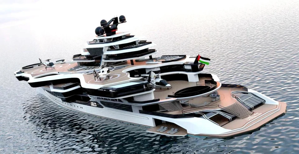 Το 140 μέτρων megayacht με το όνομα «UAE One» σχεδιάστηκε για να αποτελέσει τη ναυαρχίδα των Ηνωμένων Αραβικών Εμιράτων. Πνευματικό τέκνο του Ιταλού σχεδιαστή Enzo Manca και ενός Σαουδάραβα σουλτάνου, διαθέτει εννέα καταστρώματα και μοιάζει με παραδοσιακό αμυντικό πλοίο.