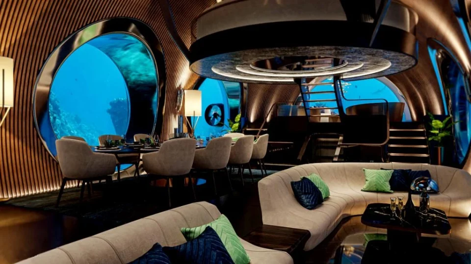 Πάνω ή κάτω από το νερό, το υβριδικό σκάφος έχει σχεδιαστεί για να κρατά τους επιβάτες του στην αγκαλιά της πολυτέλειας. Τα σαλόνια είναι εξοπλισμένα με άνετα, μοντέρνα έπιπλα και μεγάλα κυκλικά παράθυρα που προσφέρουν απίστευτη θέα στον ωκεανό.