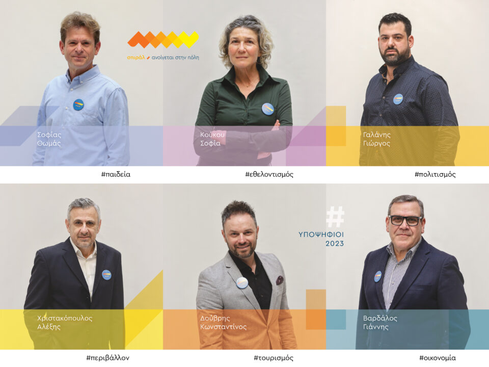 Ειδικότερα, υποψήφιοι με το σπιράλ θα είναι ο εμπορικός αντιπρόσωπος Γιάννης Βαρδάλος «για μια Πάτρα καλύτερη, λειτουργική και ελκυστική», ο Αλέξης Χριστακόπουλος, υπεύθυνος τεχνικός δικτύου/Πανεπιστημιακό Γενικό Νοσοκομείο Πατρών «για έναν Δήμο που αγκαλιάζει τη νέα γενιά», ο εκπαιδευτικός Θωμάς Σοφίας για«να κάνουμεπράξη το αυτονόητο», ο Κωνσταντίνος Δούβρης, κυβερνήτης σκαφών για «μια σύγχρονη και επισκέψιμη μαρίνα», ο διευθυντής ορχήστρας Γιώργος Γαλάνης, γιατί «τέχνη και πόλη πάνε μαζί» και η πολίτης Σοφία Κούκου «γιαμια πόλη στην οποία θα χαίρεσαι να ζεις».