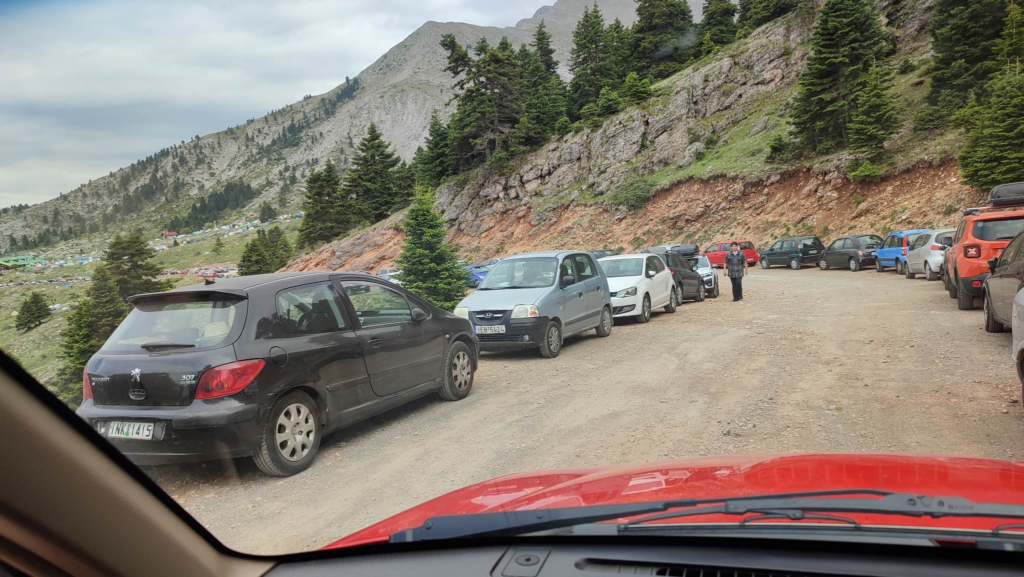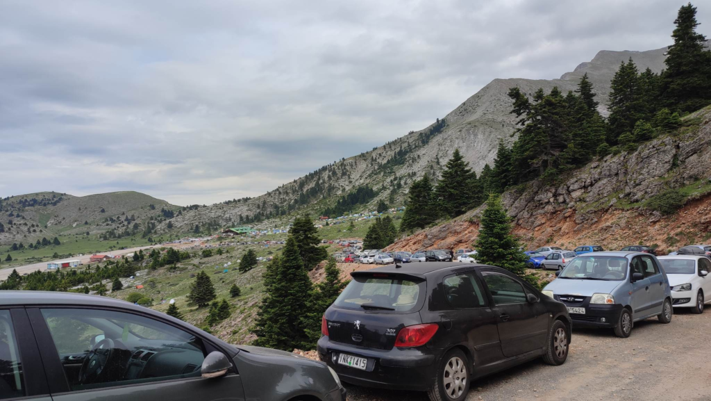 Από νωρίς το πρωί δεκάδες αυτοκίνητα ανηφορίζουν στον Χελμό ενώ έχουν στηθεί ήθη δεκάδες σκηνές από τα άτομα που θα μείνουν όλο το 4ημερο στο βουνό.