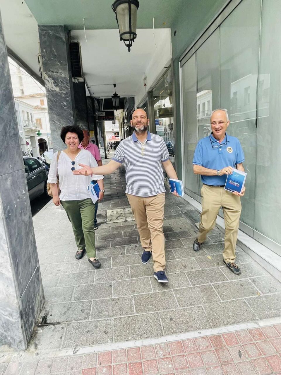 Ο Πρόεδρος της ΔΕΕΠ Αντώνης Κουνάβης, οι υποψήφιοι βουλευτές Χριστίνα Αλεξοπούλου, Ανδρέας Κατσανιώτης, Ιάσονας Φωτήλας, Έφη Γιαννιά, Ανδρέας Τσώκος, Γιώργος Τσίρης, Αθηνά Τραχήλη, Κατερίνα Καραφωτιά και Γιάννης Κουκουβέλας, μέλη της ΔΕΕΠ, Τομεάρχες και Εθελοντές, συμμετείχαν σε πέντε κλιμάκια που επισκέφτηκαν Δημόσιες Υπηρεσίες, επιχειρήσεις, εμπορικά καταστήματα, καταστήματα εστίασης και συνομίλησαν με εργαζόμενους και πολίτες.