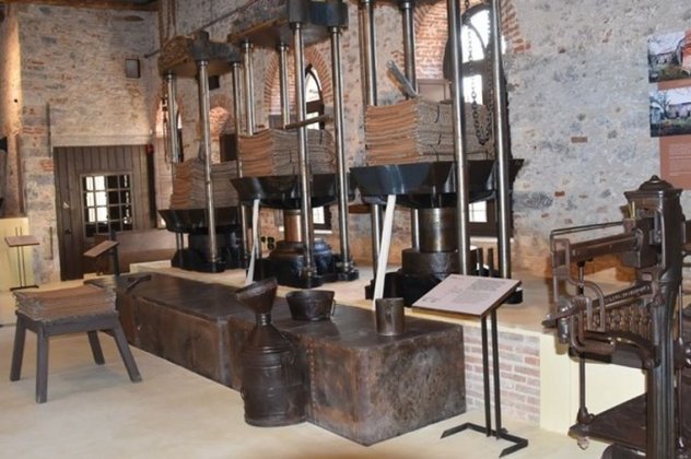 Στους χώρους του παρουσιάζονται τα στάδια και τα μέσα της μηχανοκίνητης ελαιουργίας και μέρος του σπάνιου αρχειακού υλικού που ανασύρθηκε από τα ερείπια του εργοστασίου. Επίσης, λειτουργούν δύο ξεχωριστές μόνιμες εκθέσεις. Η έκθεση «Ματιές σ’ ένα μνημείο» που περιλαμβάνει έργα σύγχρονων καλλιτεχνών εμπνευσμένα από το ελαιοτριβείο. Και η έκθεση «Η Λέσβος του Ελύτη» που παρουσιάζει τους ιδιαίτερους δεσμούς της ζωής και του έργου του μεγάλου ποιητή με τη γενέτειρα των γονιών του, στον πιο κατάλληλο για αυτό χώρο, στο λιοτρίβι του παππού του.