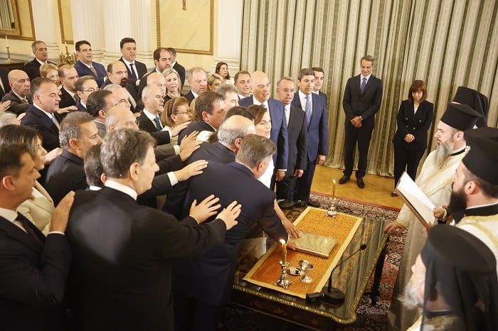 Ενώπιον της Προέδρου της Δημοκρατίας Κατερίνας Σακελλαροπούλου και παρουσία του πρωθυπουργού Κυριάκου Μητσοτάκη, ορκίστηκαν τα μέλη της νέας κυβέρνησης από τον Αρχιεπίσκοπο Αθηνών και πάσης Ελλάδος Ιερώνυμο.