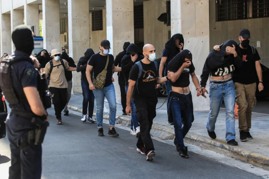 Στα δικαστήρια της πρώην σχολής Ευελπίδων έφτασαν οι συλληφθέντες, στην πλειοψηφία τους Κροάτες χούλιγκαν, για τα αιματηρά επεισόδια στη Νέα Φιλαδέλφεια.