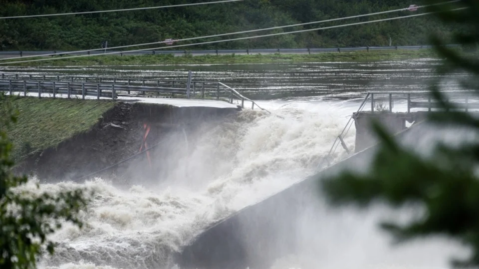 Ένα φράγμα σε ποταμό της Νορβηγίας κατέρρευσε εχθές μερικώς, με το νερό να ξεχύνεται ορμητικό από ένα μεγάλο άνοιγμα στη δομή, μια ακόμη καταστροφική συνέπεια της κακοκαιρίας Χανς που έχει προκαλέσει εκτεταμένες πλημμύρες στη χώρα.