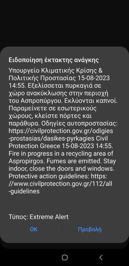 Φωτιά τώρα καίει σε χώρο ανακύκλωσης στον Ασπρόπυργο – Εστάλη 112 στους κατοίκους για πυκνούς καπνούς