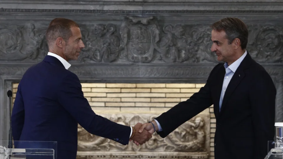 Μετά και τη σύσκεψη με τους ιδιοκτήτες Ολυμπιακού, ΠΑΟ και ΑΕΚ και τον εκπρόσωπο του ΠΑΟΚ, ο Κυριάκος Μητσοτάκης θα προχωρήσει (στις 12:00) σε κοινές δηλώσεις με τον πρόεδρο της UEFA.