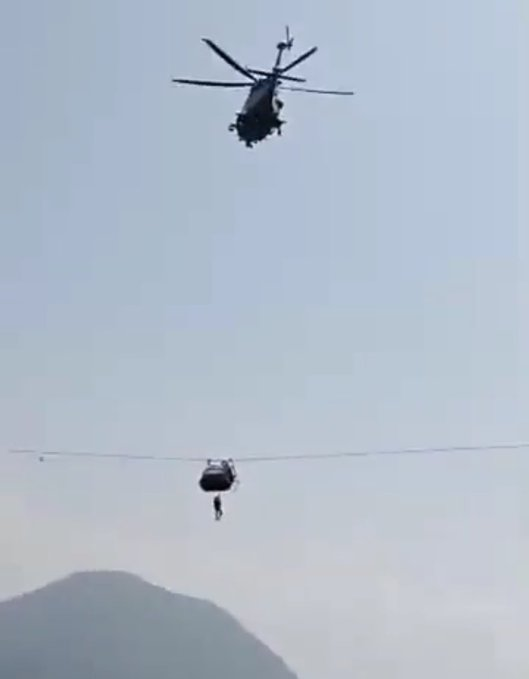 Ελικόπτερα του στρατού διεξήγαγαν επιχειρήσεις αναγνώρισης κοντά στο σημείο όπου βρισκόταν το τελεφερίκ και ένας στρατιώτης κατέβηκε με σκοινί για να δώσει στους εγκλωβισμένους τρόφιμα, νερό και φάρμακα, δήλωσε ο Τανβρίρ Ουρ Ράχμαν τοπικός αξιωματούχος.