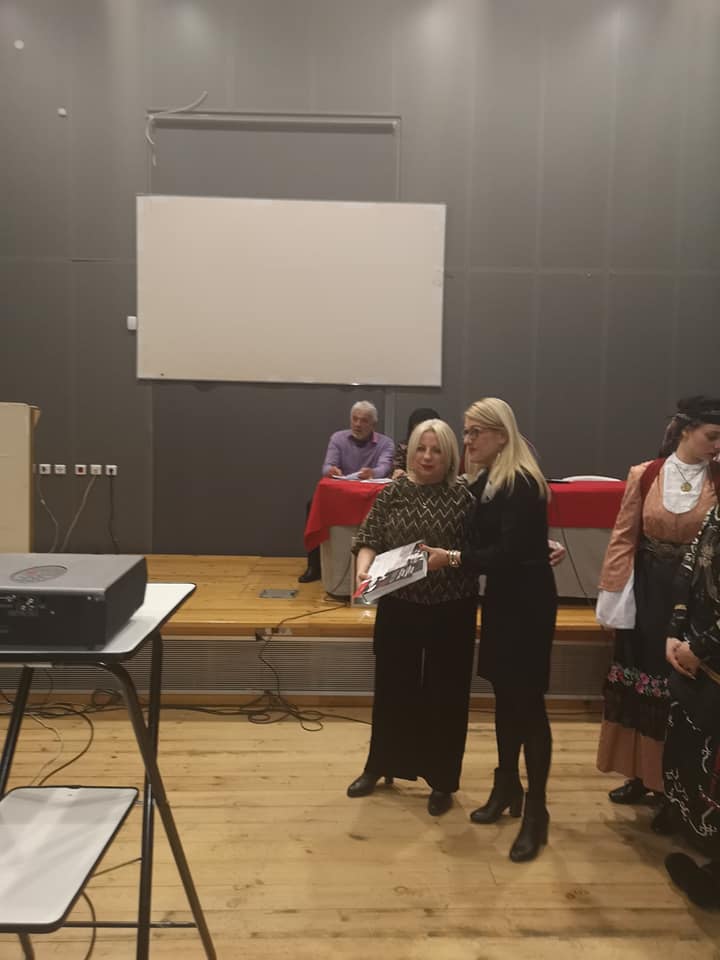 Στην εκδήλωση του Συλλόγου Καλών Τεχνών Πάτρας για τα 160 χρόνια από τη γέννηση του μεγάλου Εθνικού ποιητή Κωστή Παλαμά στα πλαίσια των εκδηλώσεων του Δήμου, που κήρυξε το 2019 ως έτος «Κωστής Παλαμάς» βρέθηκε το απόγευμα της Δευτέρας μεταξύ αλλων η γενική γραμματέας της Ομοσπονδίας γονέων και κηδεμόνων της περιφέρειας Δυτικής Ελλάδας Ασημίνα Ταγκαλάκη. Η κα Ταγκαλάκη βράβευσε την συντονίστρια του πατρινού παραρτήματος του πανελλήνιου αθλητικού σωματείου γυναικών «Καλλιπάτειρα» Μαρία Μανουσάκη.