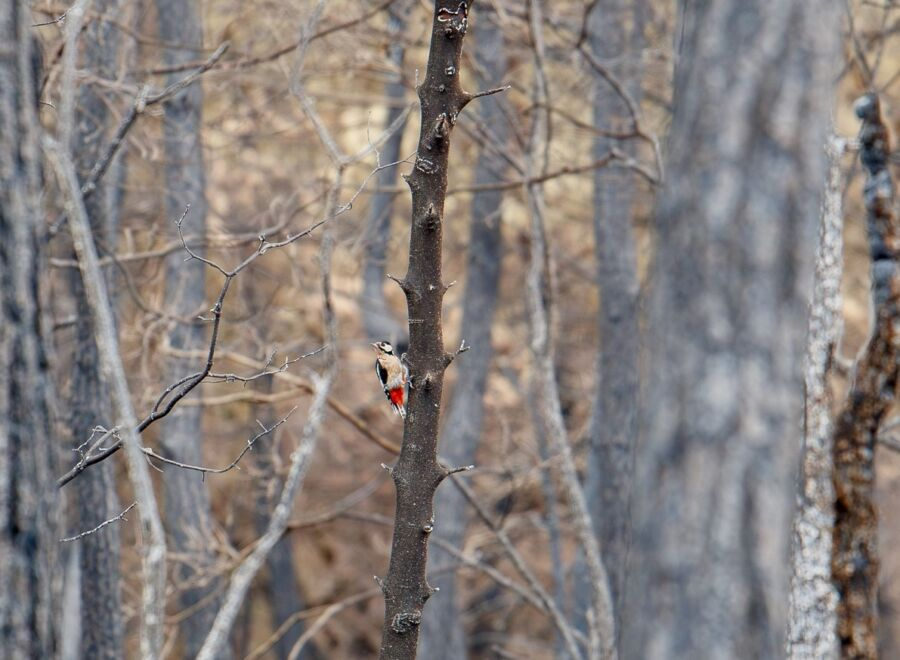 Χρώμα μέσα στο γκρίζο των καμένων έδωσε ένας πευκοδρυοκολάπτης