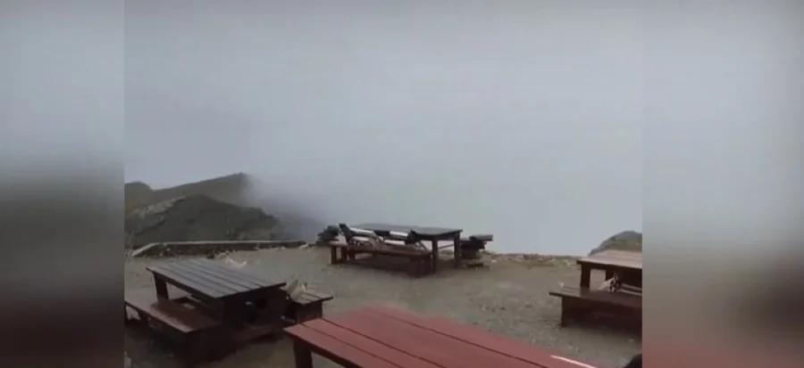 Στο οποίο φαίνεται, σήμερα 16 Σεπτεμβρίου, να πέφτει το πρώτο χιόνι εκπλήσσοντας ευχάριστα τους επισκέπτες στα καταφύγια.