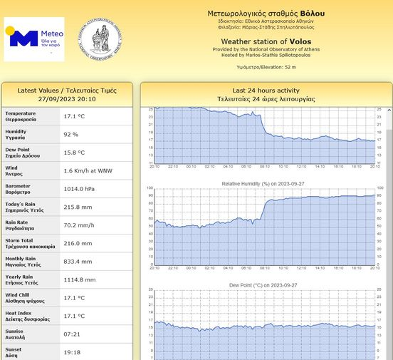 » Το ύψος βροχής ξεπέρασε σήμερα στο Βόλο τα 200 λίτρα / τετ. μέτρο και τα 1.000 για το μήνα Σεπτέμβριο, ο οποίος ακόμα δεν έχει τελειώσει, όταν ο μέσος όρος βροχής για τον μήνα Σεπτέμβρη για την πόλη είναι περίπου τα 35 λίτρα/τετ μέτρο και αν…