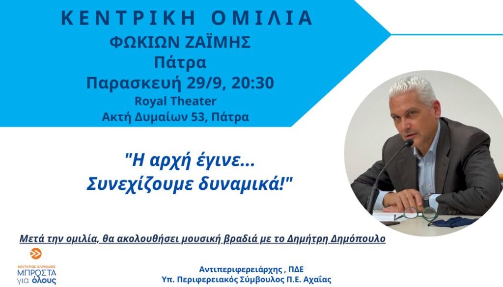 Social MediaΣήμερα η Κεντρική προεκλογική ομιλία του Φωκίωνα Ζαΐμη στην Πάτρα ! by 4press29 Σεπτεμβρίου 202329 Σεπτεμβρίου 2023 Share0