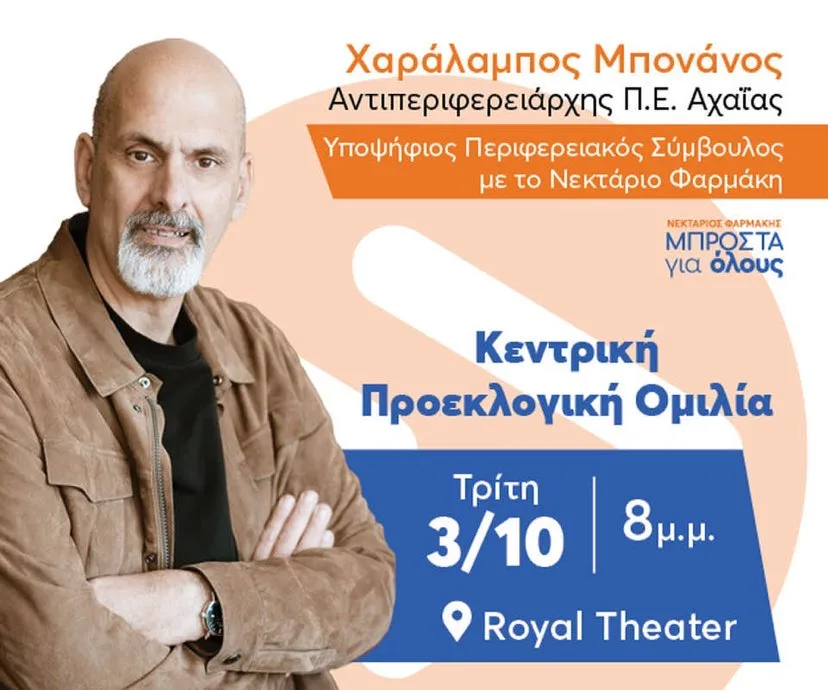 Πιένες αναμένεται να γνωρίσει η αίθουσα του ROYAL το βράδυ της Τρίτης όπου ο ΧΑΡΗΣ ΜΠΟΝΑΝΟΣ θα πραγματοποιήσει την κεντρική προεκλογική του συγκέντρωση.