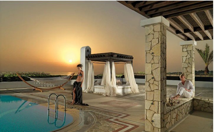 Η σουίτα των 110 τετραγωνικών μπορεί να φιλοξενήσει έως τέσσερα άτομα και κοστίζει 3.000 ευρώ τη βραδιά. Διαθέτει δύο ευρύχωρα υπνοδωμάτια, το ένα με γραφείο, σαλόνι με τραπεζαρία και δύο πολυτελή μαρμάρινα μπάνια με τζακούζι . Έχει επίσης ιδιωτική πισίνα και μπαλκόνι με θέα στη θάλασσα.