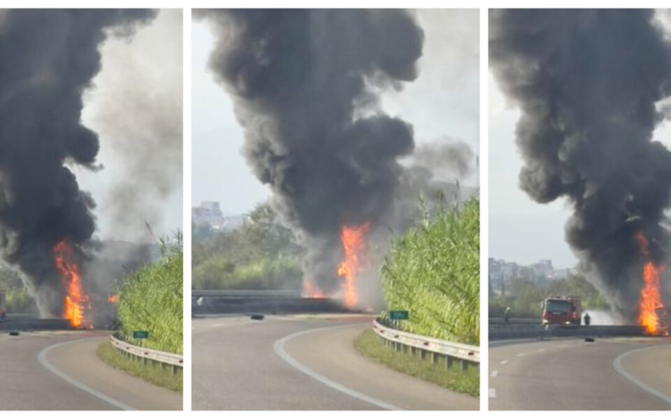 Στις φλόγες παραδόθηκε νταλίκα η οποία κινούνταν στην Ιόνια Οδό στο ρεύμα προς Αντίρριο.