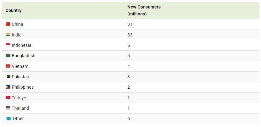 Αυτό, βέβαια, δεν αποτελεί έκπληξη, αφού τόσο η Κίνα όσο και η Ινδία έχουν τεράστιους πληθυσμούς, αυξημένο μέσο εισόδημα και μεγάλο ποσοστό αστικοποίησης.