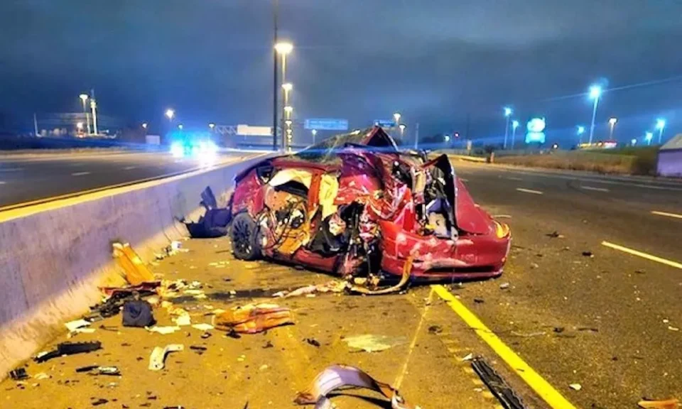 Σύμφωνα με τα στοιχεία της αστυνομίας της περιοχής, περίπου στις 5 π.μ. εκείνο το πρωί, το Tesla συγκρούστηκε με ένα τσιμεντένιο διάζωμα στον αυτοκινητόδρομο, σταματώντας τελικά στη λωρίδα ταχείας κυκλοφορίας.