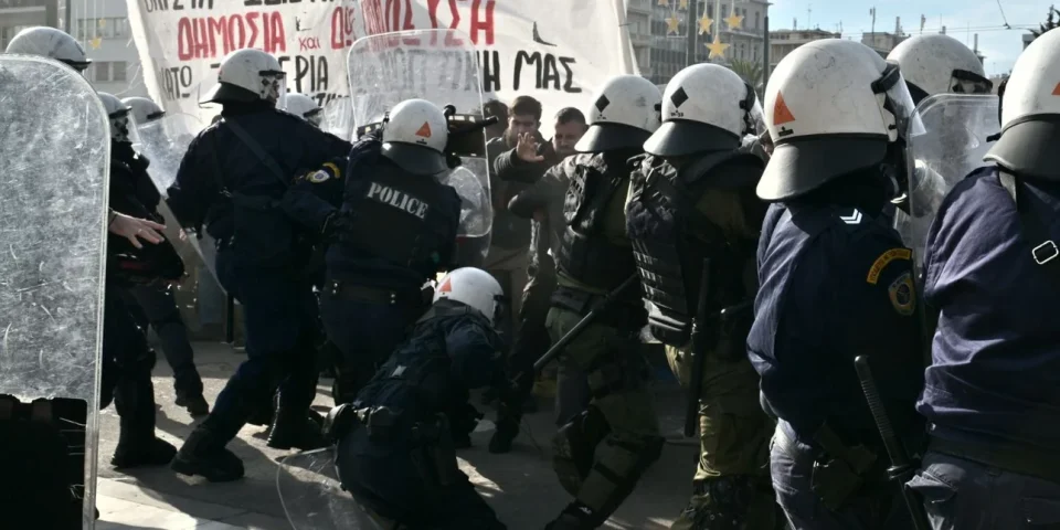 Επεισόδια περιορισμένης έντασης και διάρκειας σημειώθηκαν έξω από τη Βουλή, ανάμεσα σε διαδηλωτές και δυνάμεις των ΜΑΤ κατά τη διάρκεια του συλλαλητηρίου κατά των ιδιωτικών πανεπιστημίων.