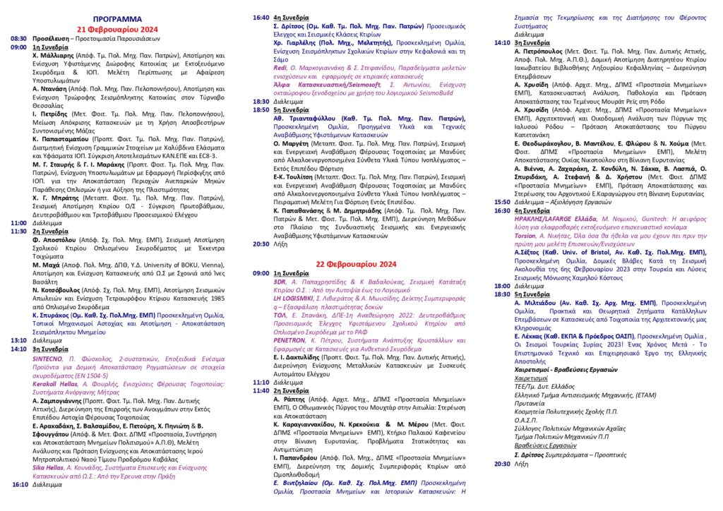 Οι εργασίες του Συνεδρίου θα ξεκινήσουν το πρωί της της Τετάρτης 21 Φεβρουαρίου (9 π.μ.) στο Συνεδριακό Κέντρο του Πανεπιστημίου Πατρών και θα ολοκληρωθούν το βράδυ της Πέμπτης 22 Φεβρουαρίου.