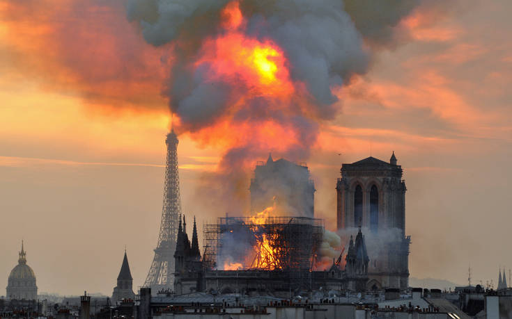 Η καταστροφική φωτιά, που προκάλεσε παγκόσμιο σοκ και θλίψη, λόγω της εμβέλειας και του συμβολισμού του μνημείου, είχε ξεσπάσει το απόγευμα της Δευτέρας και έκαιγε επί 8,5 ώρες. Τέθηκε υπό έλεγχο νωρίς το πρωί της Τρίτης κι έσβησε λίγο αργότερα, έχοντας προκαλέσει ανυπολόγιστη ζημιά. Συγκλονιστική είναι η στιγμή που το περίφημο «βέλος» της οροφής του ναού κατέρρευσε φλεγόμενο.