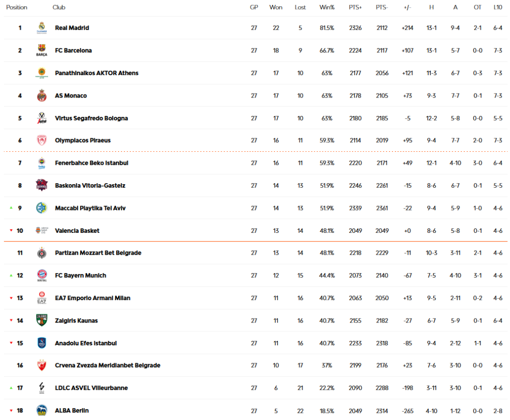 Μια θέση που μοιράζοντας με τη Φενέρμπαχτσε, η οποία με τη σειρά της νίκησε την Μπασκόνια με το εντυπωσιακό 111-96.