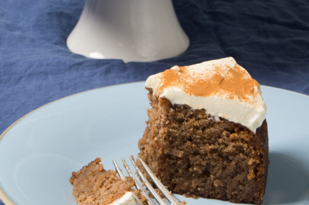 - Ξεφορμάρουμε το κέικ και απλώνουμε στην επιφάνεια την κρέμα τυριού. Πασπαλίζουμε με κανέλα και σερβίρουμε.