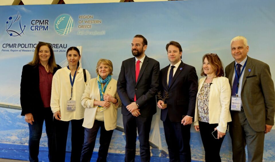 Η ανάγκη ισχυροποίησης των πολιτικών συνοχής της Ευρωπαϊκής Ένωσης και ευθυγράμμισής τους με τις ανάγκες και τις προκλήσεις που αντιμετωπίζουν οι ευρωπαϊκές Περιφέρειες, ήταν το μήνυμα που βγήκε από τη συνεδρίαση του Πολιτικού Γραφείου της CPMR (Δίκτυο Παράκτιων Περιφερειών της Ευρώπης) που πραγματοποιήθηκε σήμερα, Παρασκευή 22 Μαρτίου 2024 στον ιστορικό χώρο της Αχάϊα Κλάους στην Πάτρα, παρουσία της Επιτρόπου Συνοχής και Μεταρρυθμίσεων της Ε.Ε. Elisa Ferreira, των Ελλήνων ευρωβουλευτών, Μανώλη Κεφαλογιάννη, Νίκου Παπανδρέου και Έλενας Κουντουρά, της Γ.Γ. Διεθνών Οικονομικών Σχέσεων και Εξωστρέφειας του Υπουργείου Εξωτερικών, Μάϊρας Μυρογιάννη και πλήθους εκπροσώπων από πολλές ευρωπαϊκές περιφέρειες.