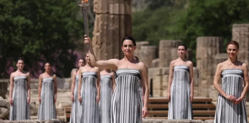 To μαγικό της ταξίδι για το Παρίσι ξεκίνησε η Ολυμπιακή Φλόγα μετά από μία μυσταγωγική τελετή την Τρίτη 16 Απριλίου στην Αρχαία Ολυμπία με την παρουσία της Προέδρου της Δημοκρατίας Κατερίνας Σακελλαροπούλου.