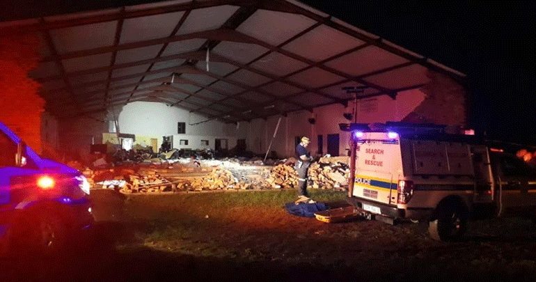 Δεκατρείς πιστοί μιας εκκλησίας Πεντηκοστιανών σκοτώθηκαν και περισσότεροι από δέκα άλλοι τραυματίστηκαν όταν κατέρρευσε ένας τοίχος του ναού κατά τη διάρκεια σφοδρής καταιγίδας, στη βορειοανατολική πλευρά της Νότιας Αφρικής.