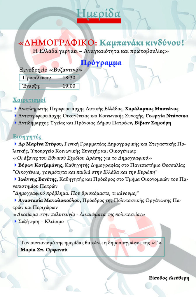 Ημερίδα: Δημογραφικό – Καμπανάκι κινδύνου!