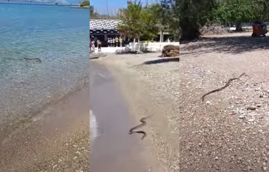 Αναστάτωση προκλήθηκε στον Καστελόκαμπο Αχαΐας όταν οι λουόμενοι είδαν ένα φίδι στη θάλασσα και βγήκαν έξω από το νερό.