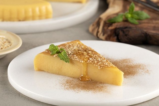 - Σερβίρουμε με σουσάμι, μέλι, φύλλα δυόσμου και κανέλα.