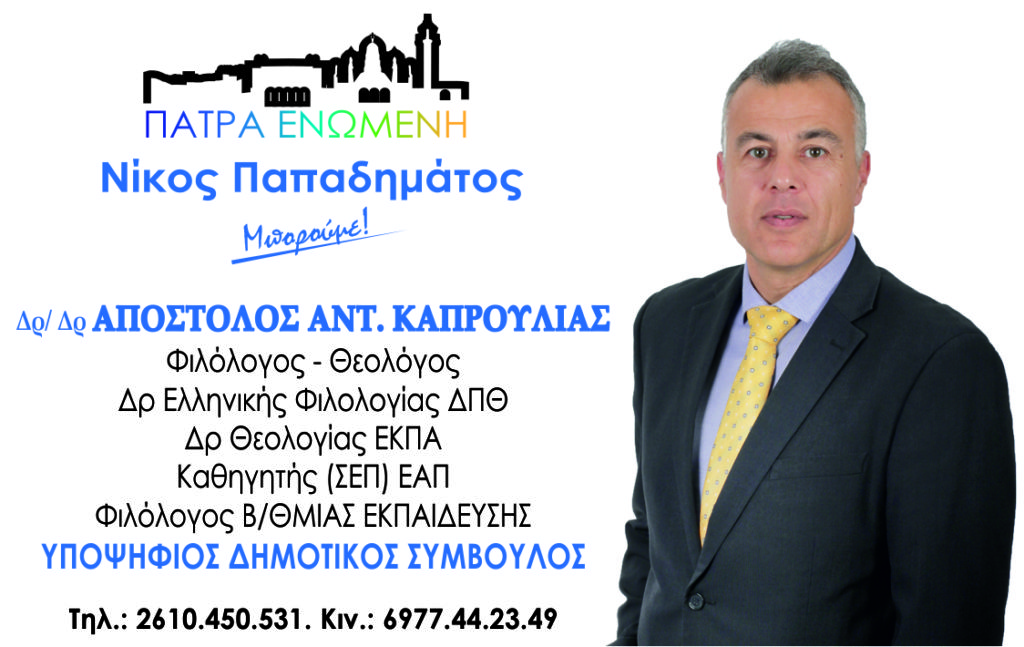 Γιατί αποφάσισε να είναι υποψήφιος με την Παράταξη «Πάτρα Ενωμένη-Ν. Παπαδημάτος» απαντά ο Απόστολος Καπρούλιας: