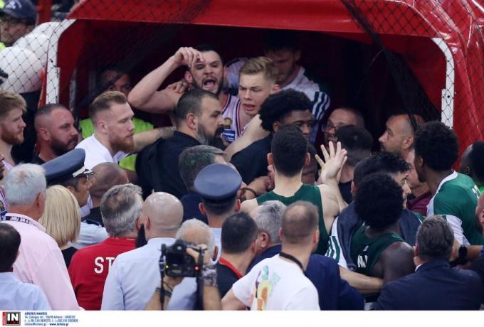 Δεν ολοκληρώθηκε με τους καλύτερους οιωνούς το Game 4 στο ΣΕΦ, καθώς κατά την αποχώρηση των παικτών προς την φυσούνα επικράτησε μεγάλη ένταση. Ο Κέντρικ Ναν έκανε νόημα “δεν σας ακούω” προς τον κόσμο, με τον Κώστα Παπανικολάου να τον βλέπει και να του μιλάει σε πολύ έντονο ύφος με αποτέλεσμα να υπάρξουν σπρωξίματα.
