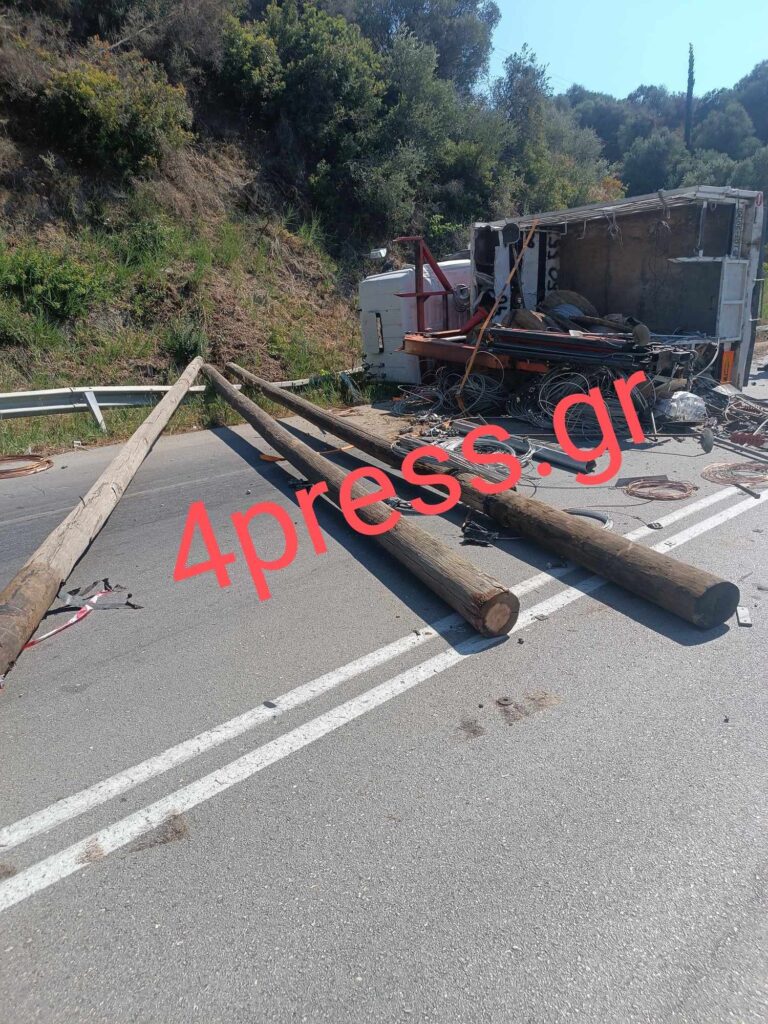 Συγκεκριμένα φορτηγό συγκρούστηκε με δύο ΙΧ στον Αλισσό, αναποδογύρισε το βαρύ όχημα.