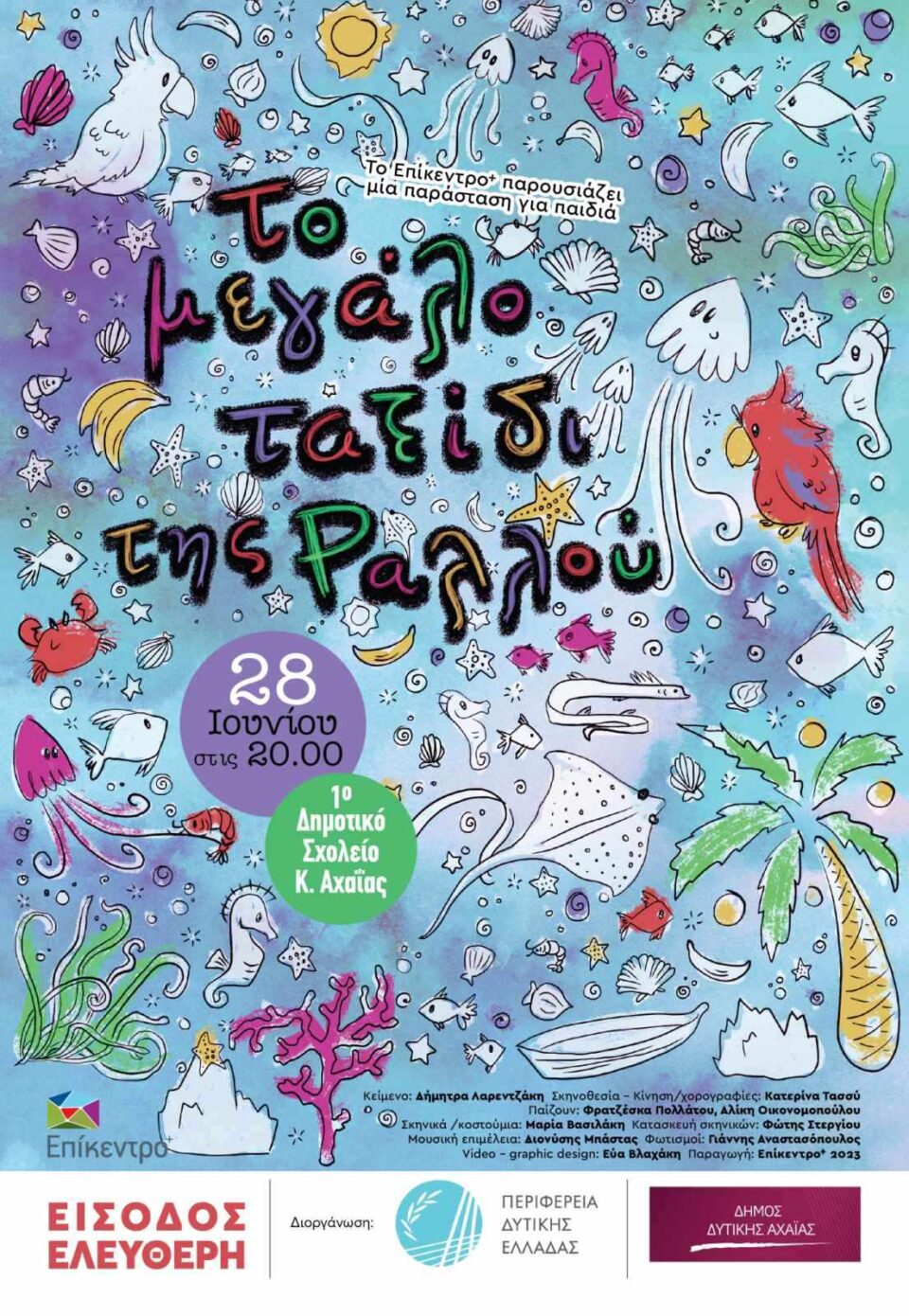 Το μεγάλο ταξίδι της Ραλλού αφορά την ιστορία ενός μικρού ψαριού που ζει στον βυθό του ωκεανού και θέλει να κάνει ένα ταξίδι για να εξερευνήσει ένα νησάκι που έχει ονειρευτεί. Σε όλο της το ταξίδι η Ραλλού θα έχει κοντά της τον Ντούντου, τον “φύλακα άγγελό της”, που θα σταθεί δίπλα της και θα τη βοηθήσει σε ό,τι χρειαστεί. Η Ραλλού μέσα από τις περιπέτειες του ταξιδιού της, θα γνωρίσει τις δυνάμεις της και θα ανακαλύψει τελικά τι είναι αυτό που έχει σημασία για αυτήν! Η είσοδος για τους θεατές είναι ελεύθερη. Τη διοργάνωση έχει αναλάβει η Περιφέρεια Δυτικής Ελλάδος ενώ στην Κάτω Αχαΐα γίνεται και συνδιοργάνωση του Δήμου Δυτικής Αχαΐας.