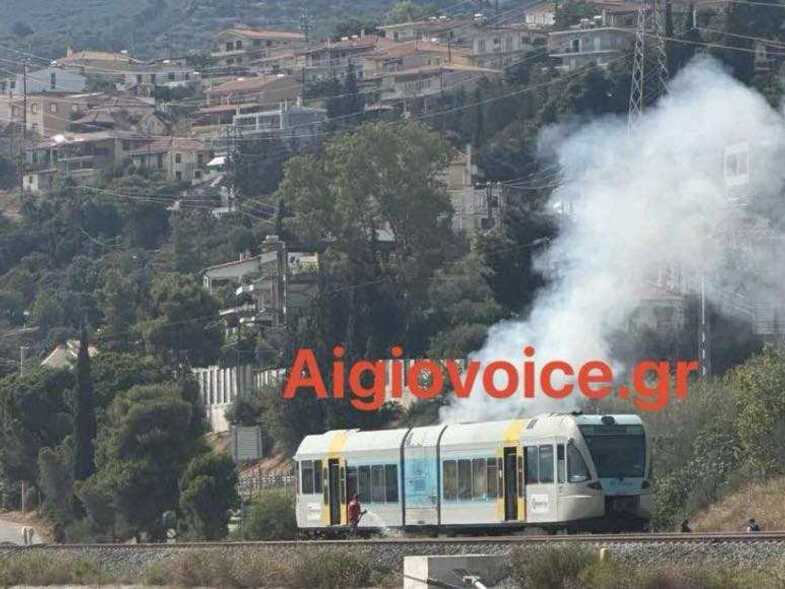 Τρόμος για τους επιβάτες του τρένου στην Ακράτα σήμερα το πρωί από φωτιά που ξέσπασε στη μηχανή.