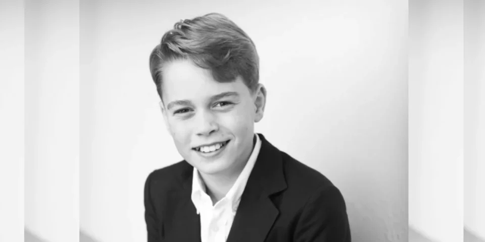 Ο μικρός πρίγκιπας Τζορτζ, μόλις 11 ετών, στη φωτογραφία για τα γενέθλιά του φορούσε κουστούμι. Λευκό πουκάμισο, μπλε-μαύρο κουστούμι, δεν διακρίνεται ακριβώς το χρώμα γιατί η φωτό είναι ασπρόμαυρη και το φαρδύ χαμόγελό του.