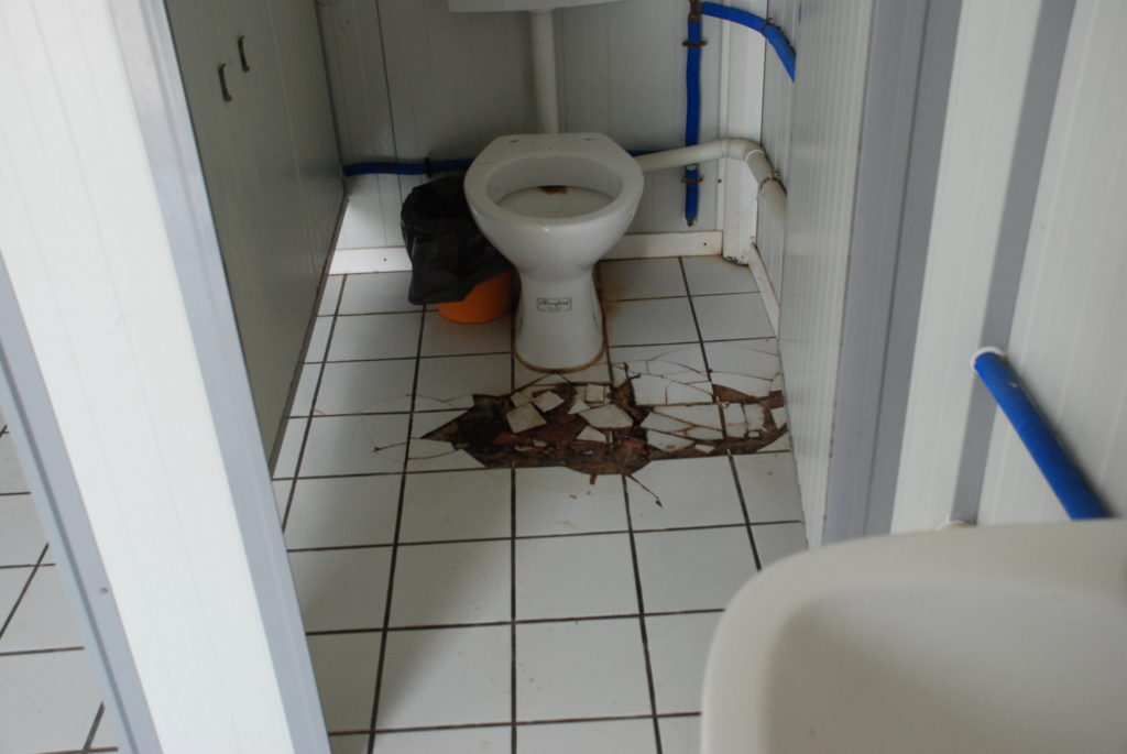 Απαράδεκτη η εικόνα που μας έστειλε φίλος αναγνώστης. Οι τουαλέτες του λυόμενου κτιρίου των εργαζομένων του Δήμου Δυτικής Αχαΐας είναι σε άθλια κατάσταση.